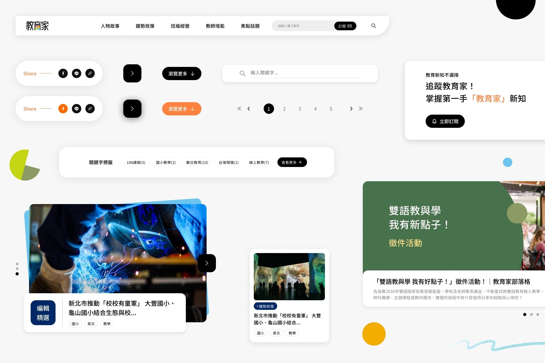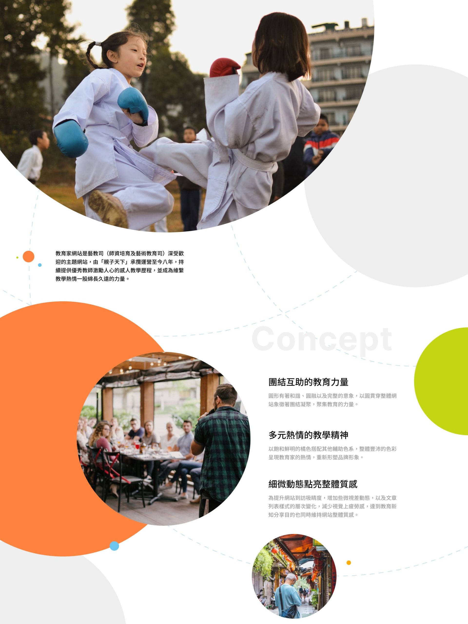 「一個人可以走得遠,但一群人可以走得久。」聚集教育的力量,給予老師們最強大的支持。教育家是一個提供教師教學互助與成長的平台,在社群中學習教學,教師能因應不斷轉變的社會型態,強化發展的能力,這次改版設計希望以優化瀏覽體驗、重塑網站形象,讓老師及師資生更能看見本站優質內容,增加跨平台的交流機會,提升「教育家」網站知名度。